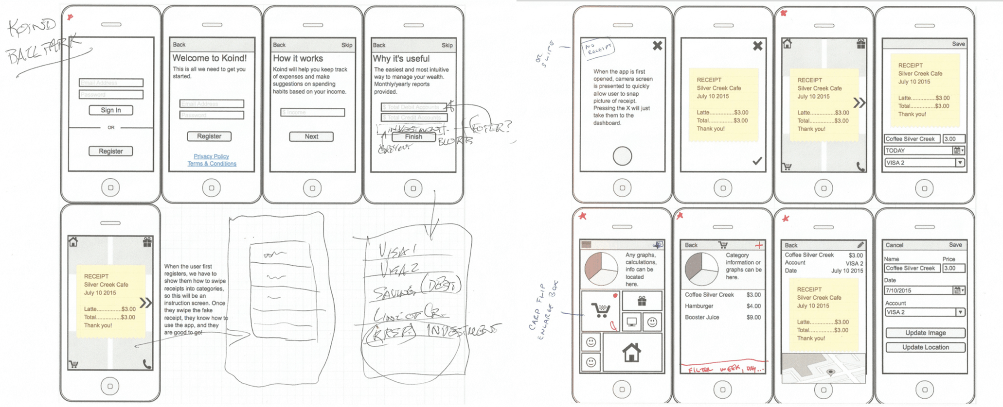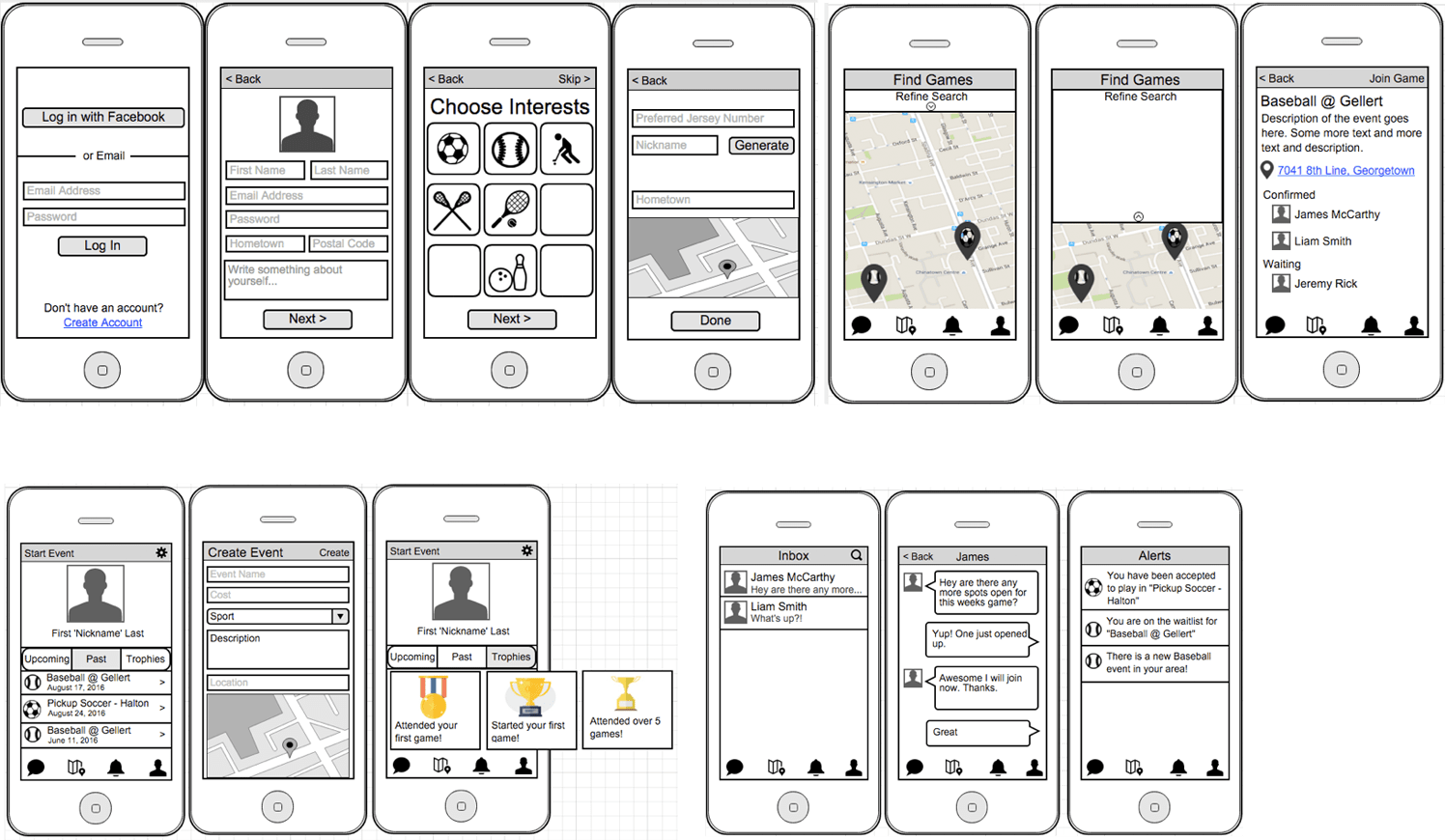 After gathering all the important details of the mobile app functions, we begin to put together simple wireframes. The purpose of this step is not to give an idea about the design, but rather to help understand how the application works in a visualized concept.